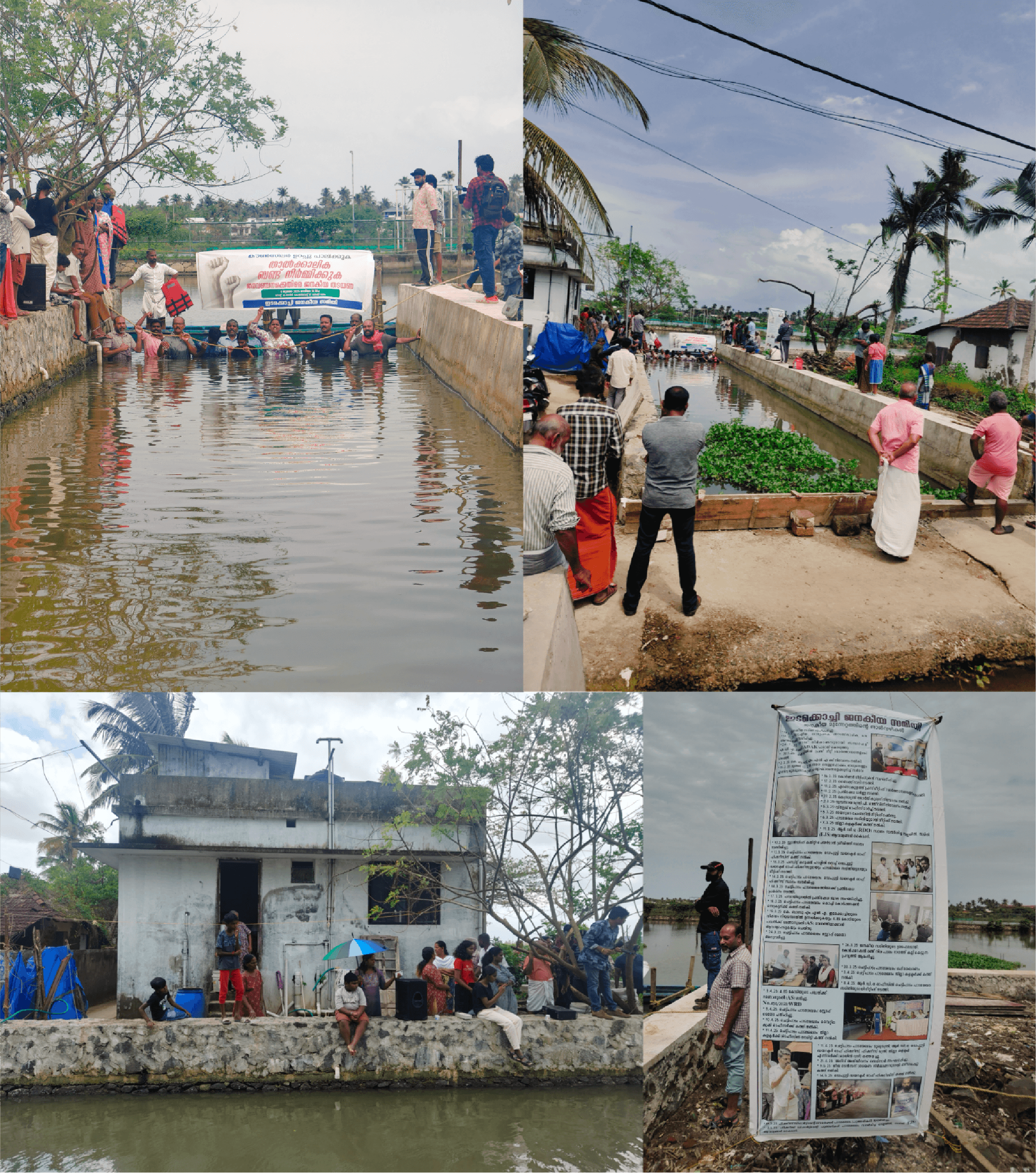 Salt intrusion corrodes wiring, crumbles walls, destroys furniture, causes skin conditions such as eczema, and poisons farmland. Tidal floods also sweep city garbage into homes. At least 300-400 houses in Puthenvelikkara are inundated everyday in a year. On Kumbalangi island, flooding happens twice a day. CRZ laws deny housing aid like LIFE scheme to those affected, trapping them in unlivable homes. The experts at Equinoct estimate tidal flooding has affected over 20,000 people across 23 grama panchayats. The state government, however, is yet to map the scale and intensity. Few collectives are mapping and studying the impact and protesting for state intervention.