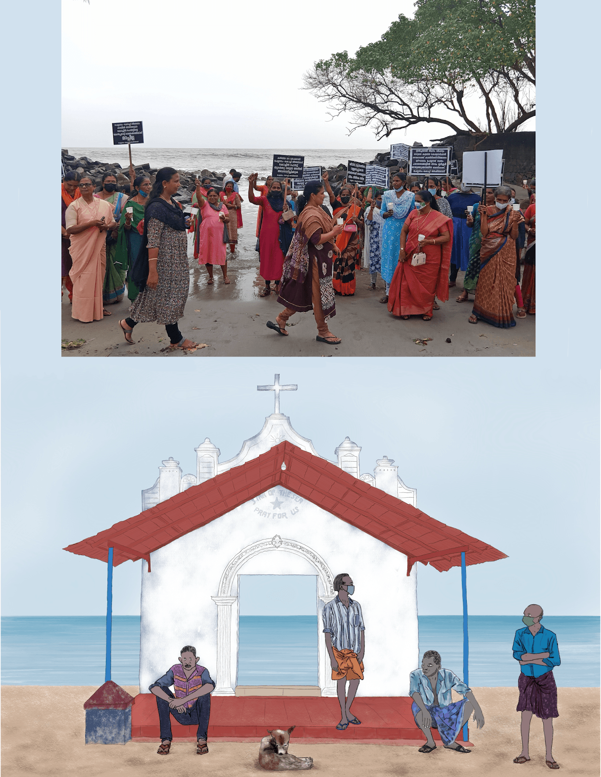 Chellanam’s 15,000 residents are predominantly Latin Christian fisherfolks (historically Fisher castes converts) with 8% SC and a few Kudumbi families. Chellanam reflects Kerala’s 59.5% eroded coastline. Post 2018 flood, the state offered Punargriham, a ‘rehabilitation’ of Rs. 10 lakhs to abandon homes within 50 meters of the tide, with which they can't even buy a decent land.