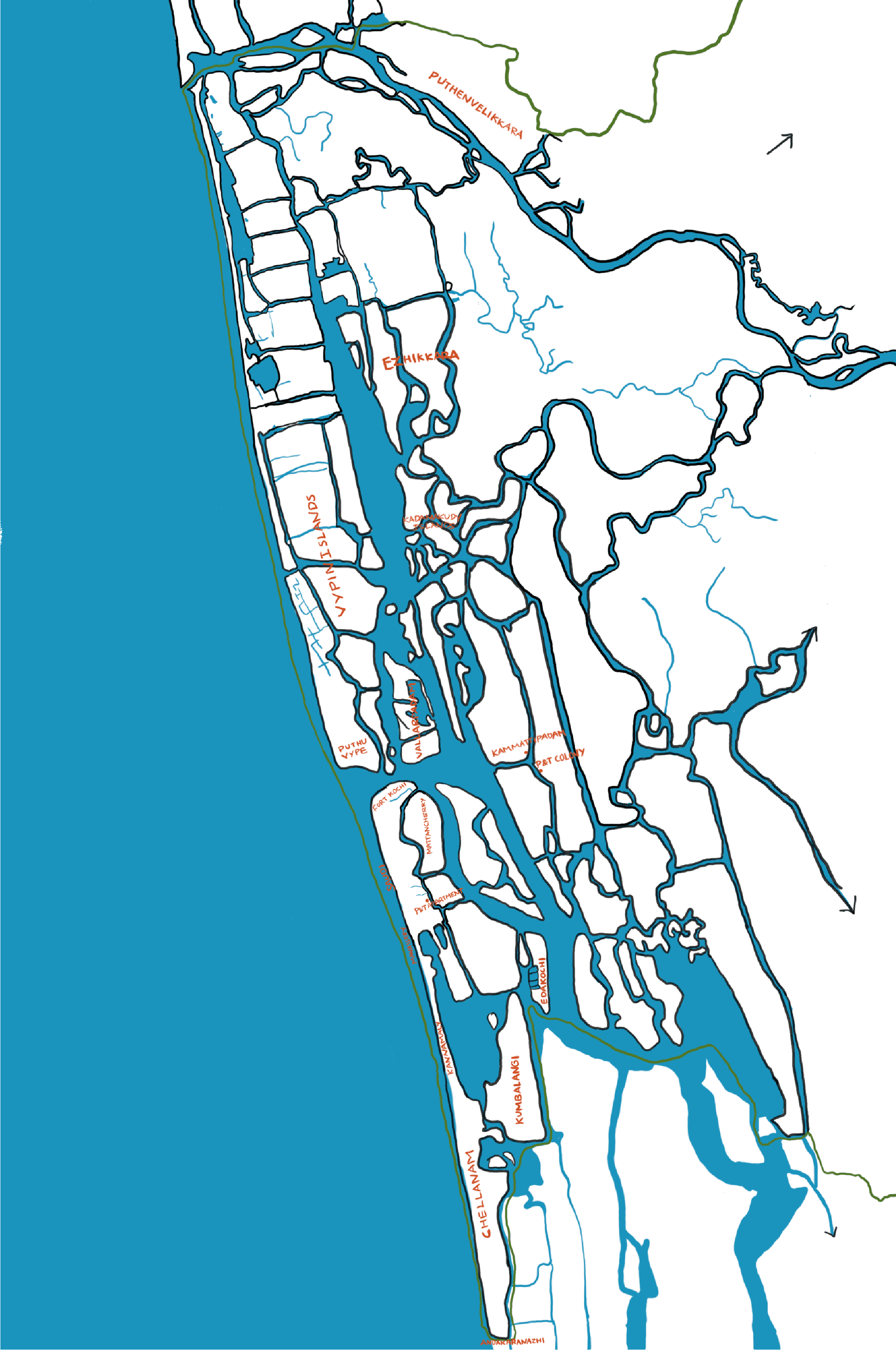 We will move through specific places in Kochi: P&T colony/apartment, Kammattipadam, Chellanam, Edakochi and the wider coastal belt—places that form interconnected nodes of archipelagic margins. This archipelago lives on the entangled forces of caste, class, religion, climate change, and urbanisation, where marginality unfolds in three entangled forms: social, spatial and sensorial.